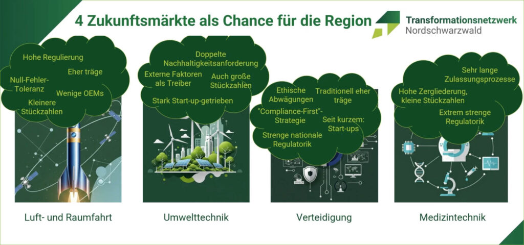 Diese Fragen beantwortet das Transformationsnetzwerk (TraFoNetz) Nordschwarzwald mit einer neuen, kostenfreien Handbuch-Reihe. Diese Markteintrittshandbücher, entwickelt speziell für kleine und mittlere Unternehmen (KMU), wurden im jüngsten TraFoNetz-Online-Impuls vorgestellt.