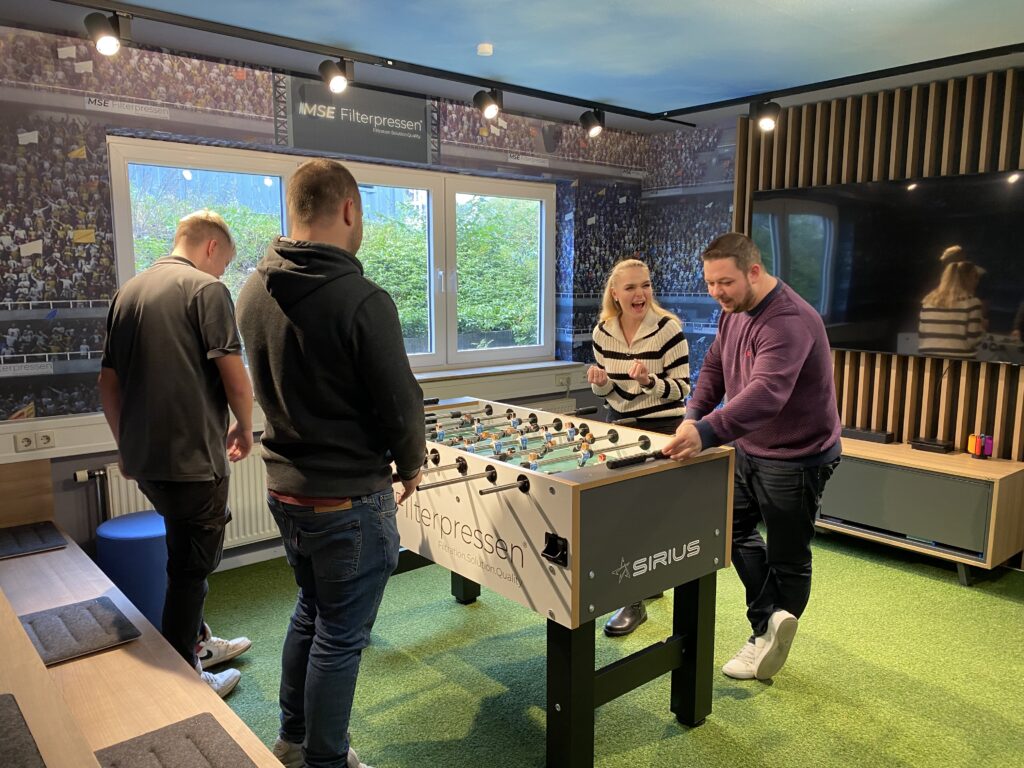 Und dann gibt es diesen einen Besprechungsraum, der so gar nicht nach klassischem Maschinenbau aussieht. Hier darf auch mal ein Ball im Korb landen oder am Kickertisch gespielt werden. Ein Ort, der zeigt, dass Konzentration und Leichtigkeit sich nicht ausschließen.